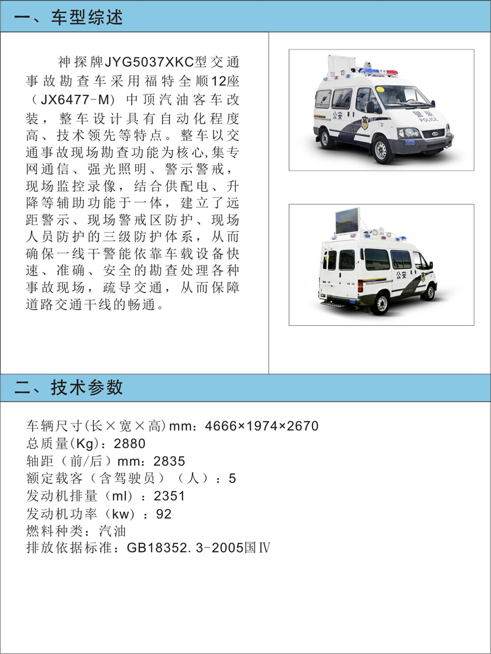 JYG5037XKC型交通事故勘查車