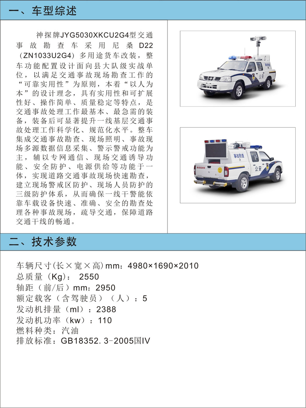 JYG5030XKCU2G4型交通事故勘查車