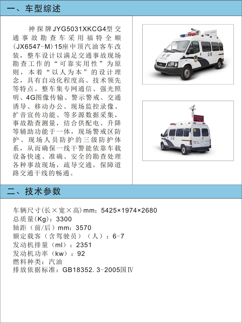 推薦標準為GA/T799-2008 《現(xiàn)場勘查車技術(shù)條件》