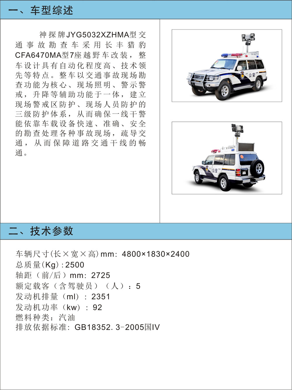 JYG5032XZHMA型交通事故勘查車