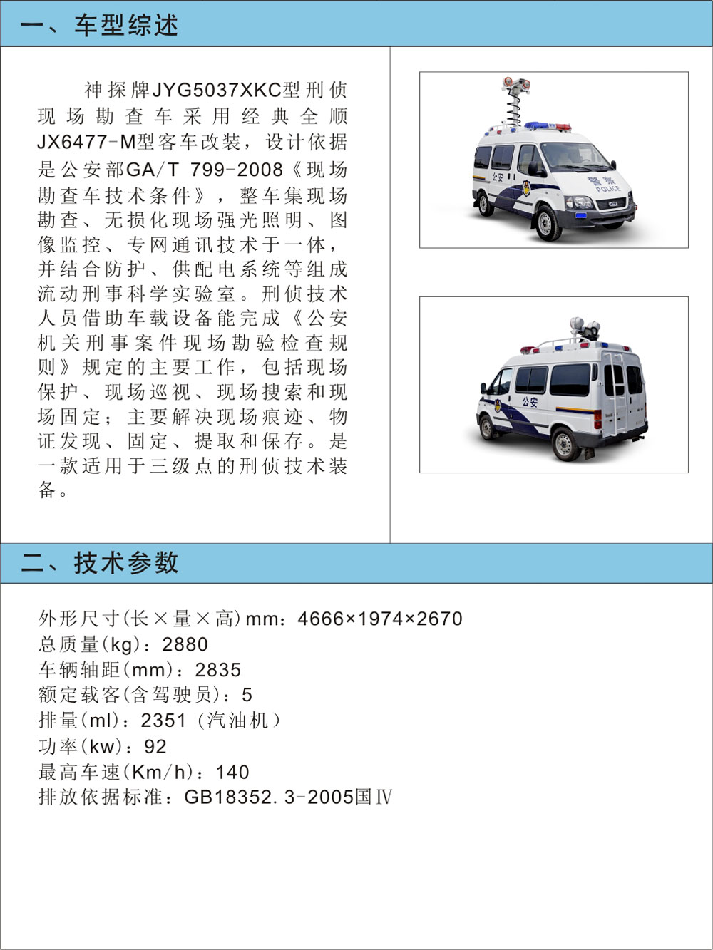 JYG5037XKC型刑偵現場勘查車