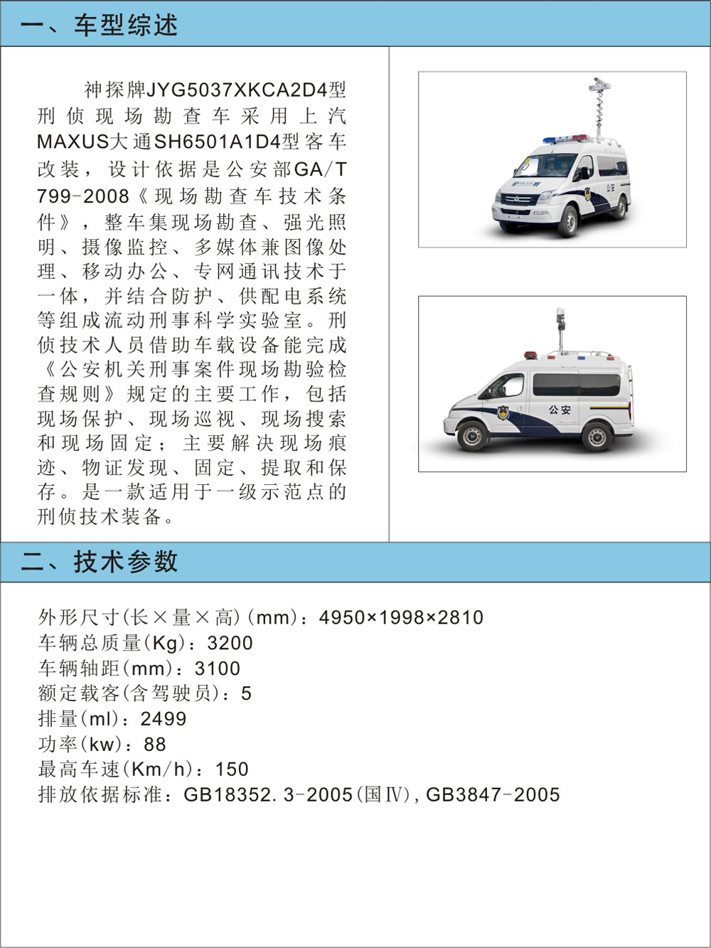 JYG5037XKCA2D4型刑偵現(xiàn)場(chǎng)勘查車